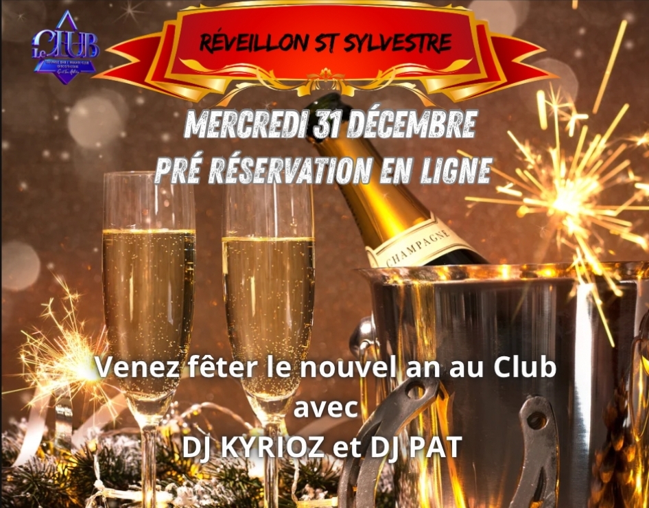 La nuit de la saint Sylvestre ambiance généraliste avec aux Platines toute la nuit DJ Kyrios et DJ Pat.
