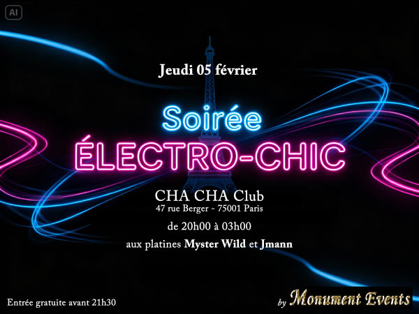 Soirée ELECTRO-CHIC le 05 février au CHA-CHA Club