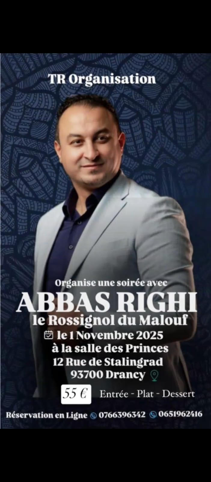 Venez vivre une soirée unique placée sous le signe de l’émotion, de la tradition et de la virtuosité musicale avec Abbas Righi, figure emblématique du maalouf constantinois. Au programme, un concert authentique, des classiques revisités, des pièces rares du répertoire andalou, et une ambiance chaleureuse pour célébrer la culture algérienne dans toute sa splendeur. Restauration traditionnelle incluse.
