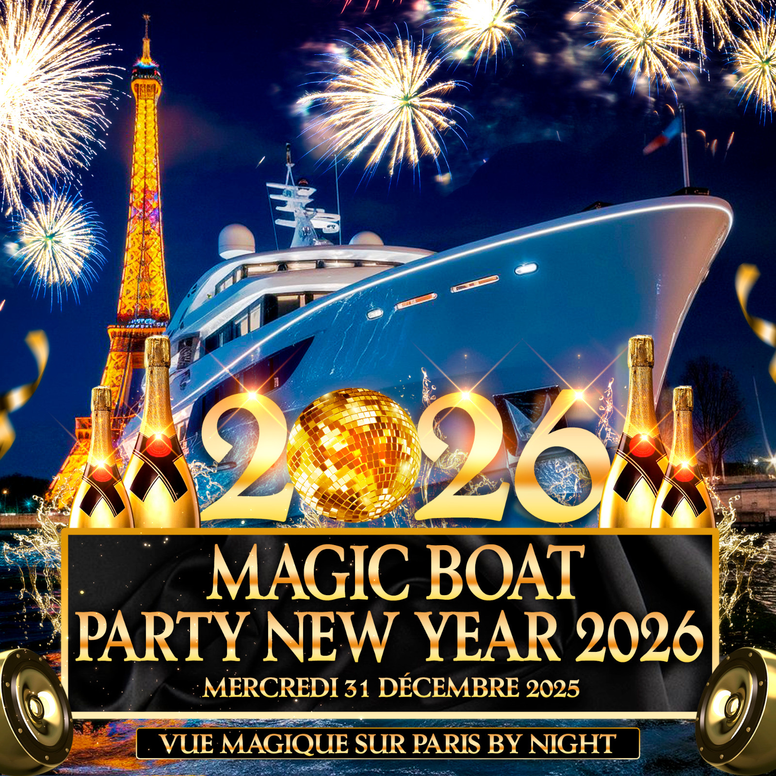 MERCREDI 31 DÉCEMBRE 2025 (22h00 - 05h00) LA MAGIC PARIS BOAT PARTY ÉDITION SPÉCIALE NEW YEAR 2026