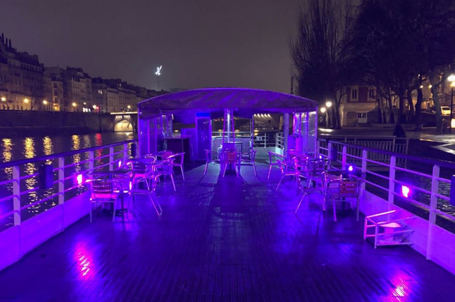 Imaginez un bateau de luxe au charme exceptionnel en plein paris (deux niveaux / deux bars / espace VIP + une grande terrasse pour les fumeurs) où de nombreuses et prestigieuses soirées y sont organisées.